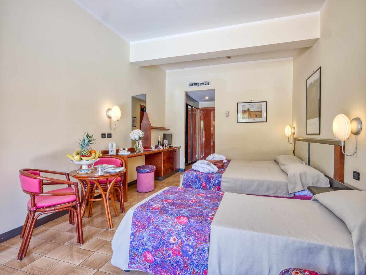 DeLuxe: 20m2, A modern stílusban berendezett szoba a főépületben található. Saját fürdőszobája káddal vagy zuhanyzóval. Hajszárító, telefonnal, műholdas TV, mini-bár, széf, tea- és kávéfőzési lehetőség, légkondicionáló (az évszaktól függően és az Ön számára diszkrecionális kezelés.), INGYENES WIFI, erkély vagy terasz. Lekérésre