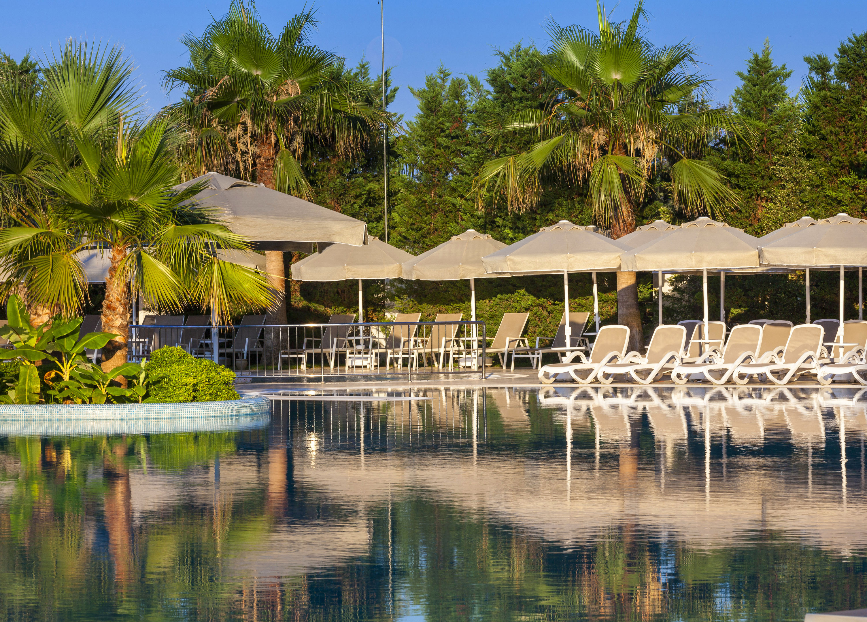 Forró napokon kettő medence - egy benti és egy kinti - gondoskodik a hűsítő élményről. A vízicsúszda kicsiknek és nagyoknak is élményt nyújt. Rendelkezésre áll egy terasz, napernyők, és nyugágyak is. Ezen kívül van egy medence- és snackbár is. A mozgásra vágyók az alábbi lehetőségek közül választhatnak: tenisz és minigolf. A vízisportok kedvelőit vízi aerobikkal várják. A szállás a beltéri sportok kedvelőit egy edzőteremmel, asztali tenisszel, tollaslabda pályával, biliárddal, darts-cal, fallabdával és aerobikkal várja. A szálláshelyen a vendégek a wellnessrészlegen kényeztethetik magukat. A szolgáltatásokhoz tartozik szauna és törökfürdő, valamint felár ellenében masszázs kezelések is. A szabadidős kínálatban szerepelnek továbbá: szórakoztatóprogramok, egy diszkó, egy miniklub és egy éjszakai klub. Copyright GIATA 2004 - 2026. Multilingual, powered by www.giata.com for client no. 703822
